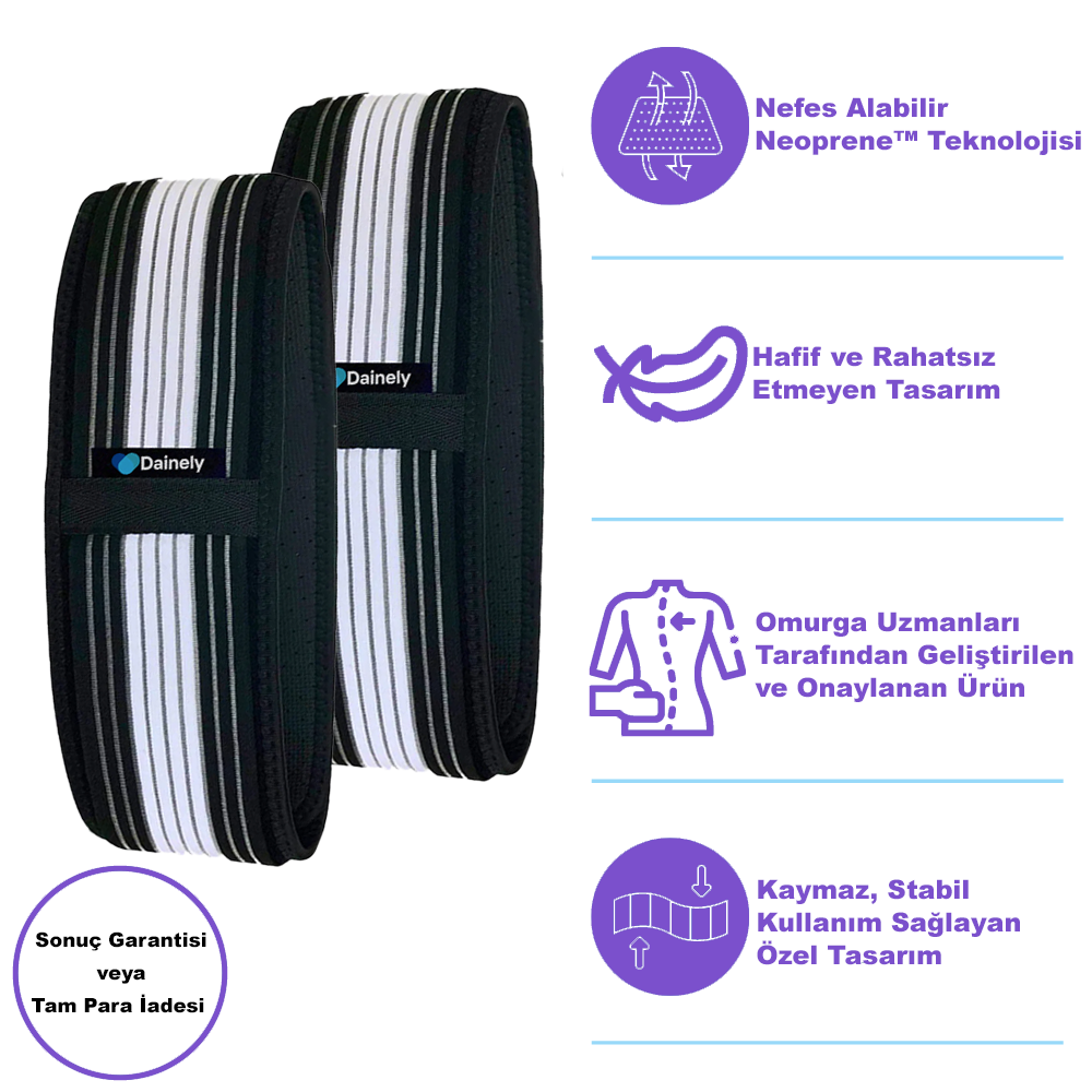 Birçok kullanıcı, Dainely™ Bel Kemeri’ni takar takmaz siyatik ve bel ağrısında belirgin rahatlama yaşar. Hedefe yönelik kompresyonu sayesinde omurgayı stabilize eder ve sinir üzerindeki baskıyı azaltarak anında destek sağlar. Kalıcı faydalar için kemeri en az iki hafta boyunca düzenli olarak kullanmanızı öneriyoruz. Zamanla vücudunuzun kendi iyileşme mekanizması güçlenir ve hareket kabiliyetiniz artar.